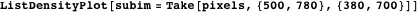 To develop the method, we do not need the whole image. For speed and lower memory use, we take a subimage. We can see the periodic dithering more clearly by zooming in.