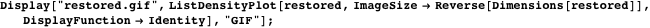 are proportionally rescaled), and writes the restored image to disk, in this case as a GIF file.