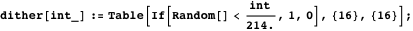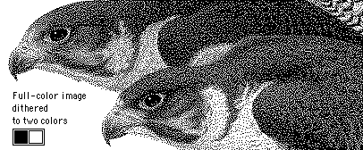 We first give an example of how dithering can be applied to an image. It is simplest to replace each pixel with a small array of random black dots, with the number of dots proportional to the intensity.