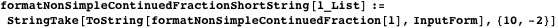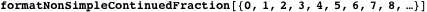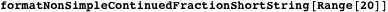 We use formatNonSimpleContinuedFraction to define a similar function for simple continued fractions.