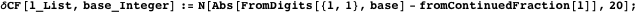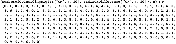 To measure the quality of a Trott constant, we compare the value of the radix form and the continued fraction. The function radixCFDifference calculates the difference.