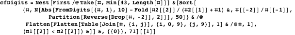 digits, evaluate their quality (which means the number of coinciding digits in the two representations), and keep the best poolSize sequences in the pool. We repeat this process until either the best sequence no longer shows improvements or the specified number of digits that agree has been achieved. The comments in the code explain the individual steps.