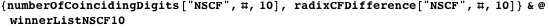 We define another function for later use. Given a sequence, the function shortenedSequence shortens it to the minimal length that exhibits the maximal number of coinciding digits.