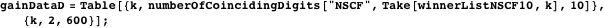 These are the results for the number of achieved coinciding digits from