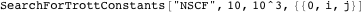 | M. Trott, “Finding Trott Constants,” The Mathematica Journal, 2012. dx.doi.org/10.3888/tmj.10.2-2. | |