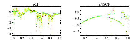 Here we show the differences for the simple and nonsimple continued fractions for sequences of length 2 to 5. We color the differences according to the original sequence length.