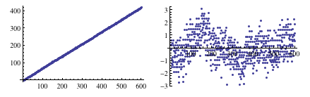 The following graphics show the digit gain and the difference of the digit gain and its linear part.