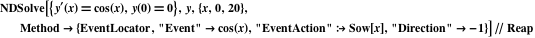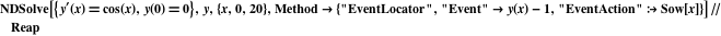 Mark Sofroniou (marks@wolfram.com) answers: An event is located when a change in sign in the event function is detected. For the function