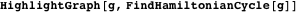 Using HighlightGraph, display a HamiltonianCycle of the graph g.