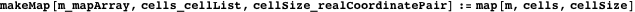 mapArray is a rectangular array of nonnegative integers. Their positions in mapArray correspond to the physical location of that cell on the map. The integers in mapArray are the positions of the respective cells in cellList, and 0s denote unoccupied cells.