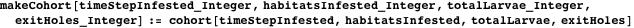 The cohort data type contains information on the time of infestation, number of habitats infested, total number of larvae present, and the number of adults that have been produced.