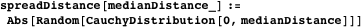 Spread distance for each organism that is moving is generated using the following function where medianDistance is the median spread distance.