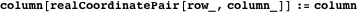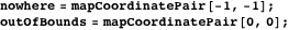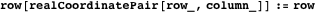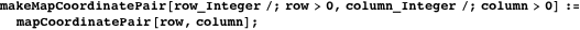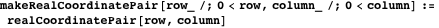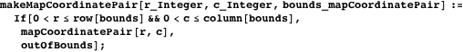 The position of a cell in mapArray is defined by a pair of positive integers using the data type mapCoordinatePair which has special cases including outOfBounds. The functions row and column are selectors of both the mapCoordinatePair and realCoordinatePair data types.