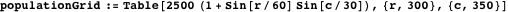 This function produces a not very realistic table of population densities.