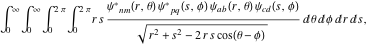 However by using Mathematica and a little ingenuity, we can do this integral exactly in all cases needed in computation. The detailed derivation (breaking down and transforming the integral into a sum of components) can be found in [13]. For example, we set the quantum numbers