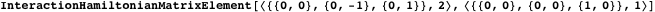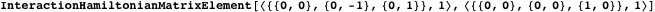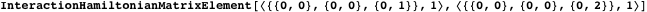 As mentioned previously, there are general rules for calculating Hamiltonian matrix elements. These rules are coded in the function InteractionHamiltonianMatrixElement, and their derivation can be found in [13]. In brief, when the spatial wavefunctions of the two basis elements differ by more than two orbitals (i.e., after being sorted so the orbitals are in maximum correspondence), then the matrix element is zero; when the spatial orbitals differ by two or less orbitals, a different rule applies for each of the three cases (i.e., zero, one, and two orbitals differ). These formulas are quite general and can be used for any interaction Hamiltonian that acts pairwise.