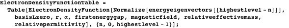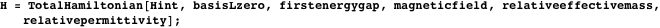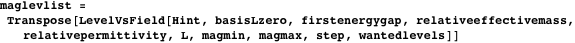 can then be used for any value of the harmonic well constant, magnetic field, relative effective mass, and relative permittivity. We have also loaded previously calculated integral definitions using the function LoadIntegralandHamiltonianData to speed up our calculation and saved the data afterward using SaveIntegralandHamiltonianData to speed up future calculations run in other sessions.