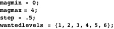 We can use LevelVsField to calculate a list of energy levels for a range of magnetic fields defined by magmin, magmax, and step given in Tesla, and for the levels defined by wantedlevels. Here we choose the first six energy levels and plot for the magnetic field range of 0 to 4 Tesla at intervals of every 0.5 Tesla.