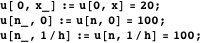 Next, we specify Dirichlet boundary conditions: both ends of the rod at spatial coordinate