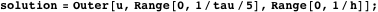 The solution is now found using an outer product, where we only want to see a fraction of the time steps.