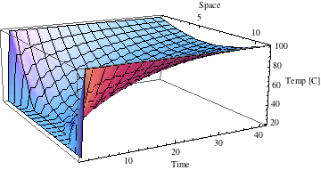 are set to 100°C. In other words, for any time step the boundary has fixed values.