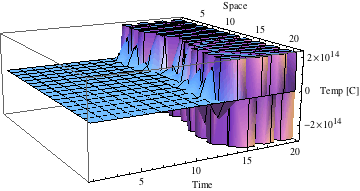 This produces a disastrous result. The algorithm became unstable by increasing the number of grid points