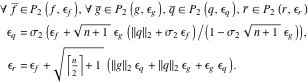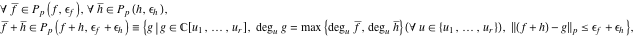 Therefore, to do algebraic operations, we have to guarantee the properties for all possible polynomials that are sufficiently close to the given polynomial. For example, assuming the precision is 16, the polynomial set of the polynomial (2) includes the following polynomials: