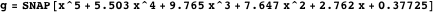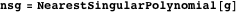 This gives the nearest singular polynomial to g, so the output polynomial nsg has a double root. Note that the current implementation of NearestSingularPolynomial is still experimental and that the definition of the nearest singular polynomial of a SNAP structure may change in the future.