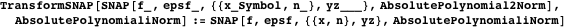 Our aim is to provide practical implementations of SNAP functions with a unified tolerance mechanism for polynomials like Mathematica‘s floating-point numbers or Kako and Sasaki’s effective floating-point numbers [9]. Our idea is very simple. We only have to add new data structures representing such polynomials with tolerances and basic calculation routines and SNAP functions for the structures. At this time, only simple tolerance representations (