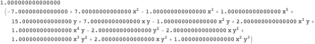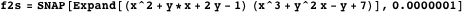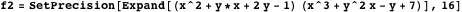We note that there are two approaches to operating with empirical polynomials in an extreme instance—using inexact or exact approximations. For example, let us consider factoring bivariate polynomials. The following numerical polynomial is reducible if we rationalize its coefficients up to machine precision: