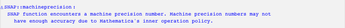 The SNAP package is useful for almost all users who have to work with polynomials with errors in their coefficients. Users may think that Mathematica has its own accuracy and precision system, and therefore another structure like those in SNAP is unnecessary. This will be true in the future; however, at least now, most of the latest algorithms for numerical or empirical polynomials cannot operate with coefficient-wise accuracy and precision. Using only significant digits like Mathematica‘s cannot answer the algebraic problems, though it can guarantee significant digits of coefficients generated by polynomial arithmetic. Moreover, most of the algorithms in symbolic-numeric computations have to use matrix computations and are not compatible with coefficient-wise concepts, since they usually use matrix norms. Depending on the algorithm, by using absolute irreducibility testing, for example, we can combine them with Mathematica‘s coefficient-wise error scheme and we plan to incorporate that in a future release.
