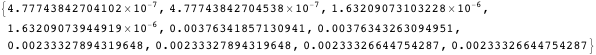 In this version, we suppose that the basic four operations between Mathematica‘s bigfloat numbers and its interval arithmetic guarantee the precision of their results, since basically we use Mathematica‘s own arithmetic for estimations. All the implementations depend on Mathematica‘s accuracy and precision tracking system, though in our implementation, we round up all the error parts in case our assumption is incorrect.
