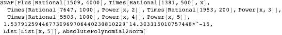 -norm) for coefficient vectors of polynomials and a few SNAP functions are implemented, but the package is an ongoing project (Version 1.0 should be released in March 2007).