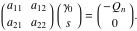 unknowns. The system of equations can be put into standard form. The terms involving unknowns are collected on the left-hand side of the system of equations and the known quantities are collected on the right-hand side. The result can be written in block-matrix form as