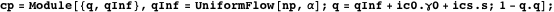 In the following expression, the individual steps for implementing the model in the previous section are collected into a module. Most names for variables have been shortened for conciseness, but should be recognizable.