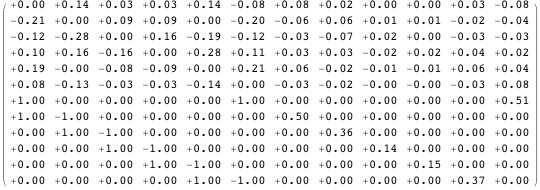 Display the matrix in reduced precision to illustrate the coefficient matrix for the full system of equations.