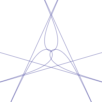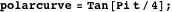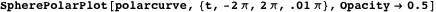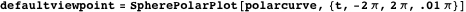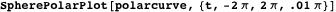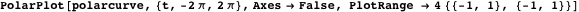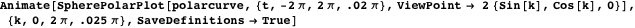 that it is as if we had reached it. As an illustration, here are the graphs of a polar curve first in the plane (with asymptotes) and then on the sphere.
