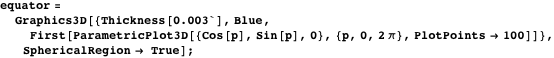 We define the sphere and the equator, two meridians, a blue zero, and a red