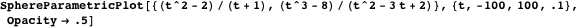 To avoid infinities, SphereParametricPlot is based on ScatterPlot3D rather than ParametricPlot3D. In analogy with Plot and PolarPlot, we define the functions SpherePlot and SpherePolarPlot, both in terms of SphereParametricPlot.
