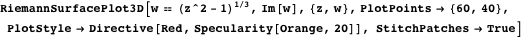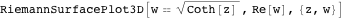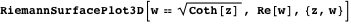 Here is another example of a Riemann surface plotted with RiemannSurfacePlot3D.