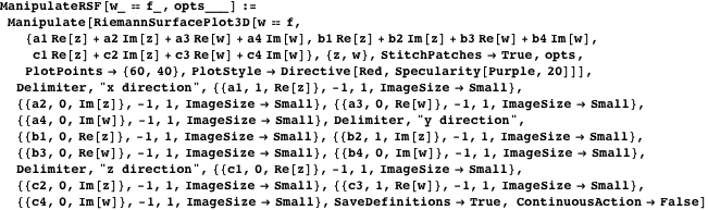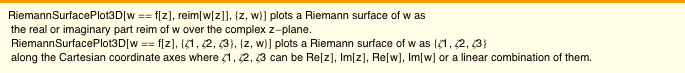 can be done easily using the Cauchy-Riemann conditions.) An updated version of the package, based on the code from The Mathematica GuideBook for Numerics [5], is available on the Mathematica GuideBooks website (www.mathematicaguidebooks.org/V6/downloads/RiemannSurfacePlot3D.m).
