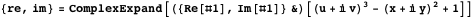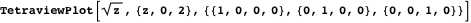 ), we are naturally led to Banchoff’s tetraview [6] of a complex-valued function. In this section, we implement such a construction. Starting with a plot of the real and imaginary parts of a complex-valued function over the complex plane, we extract the underlying graphic complex, and re-evaluate the function at the