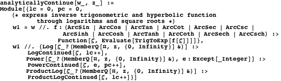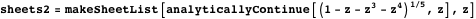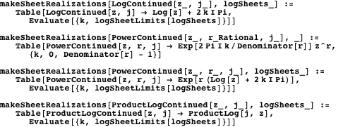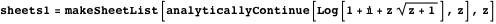The function makeSheetList generates a list of the analytically continued sheets of a multivalued function by forming the outer product of all sheets of all the multivalued functions that occur.
