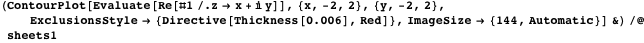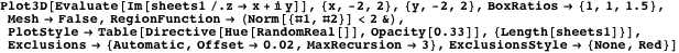 . (Here we use the suboption TimeConstraint in the Exclusions option to allow the calculation of more complicated exclusion sets for more complicated functions.) The sheets are generated using the function analyticallyContinue.