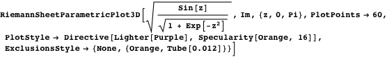 Using RiemannSheetParametricPlot3D, we can now plot the Riemann surface of the function
