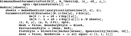 over the complex plane become special cases) - Using the Exclusions option to avoid branch cuts in Plot3D, ParametricPlot3D, and others