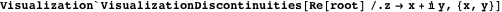 We can also obtain descriptions of the excluded cuts using the function VisualizationDiscontinuities from the context Visualization`.