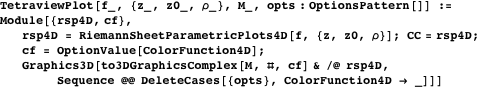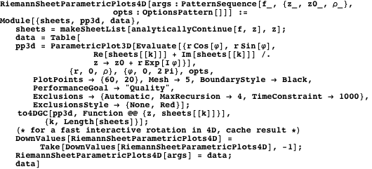 We define a function RiemannSheetParametricPlots4D that generates a GraphicsComplex with vertex values in