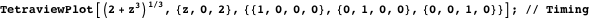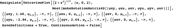 Putting the last two functions together, we have TetraviewPlot. We give it the option ColorFunction4D, which operates on the unscaled 4D coordinates to easily color a surface.