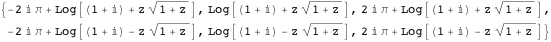 results in six parametrized sheets: three from the outer logarithm combined with two from the inner square root.